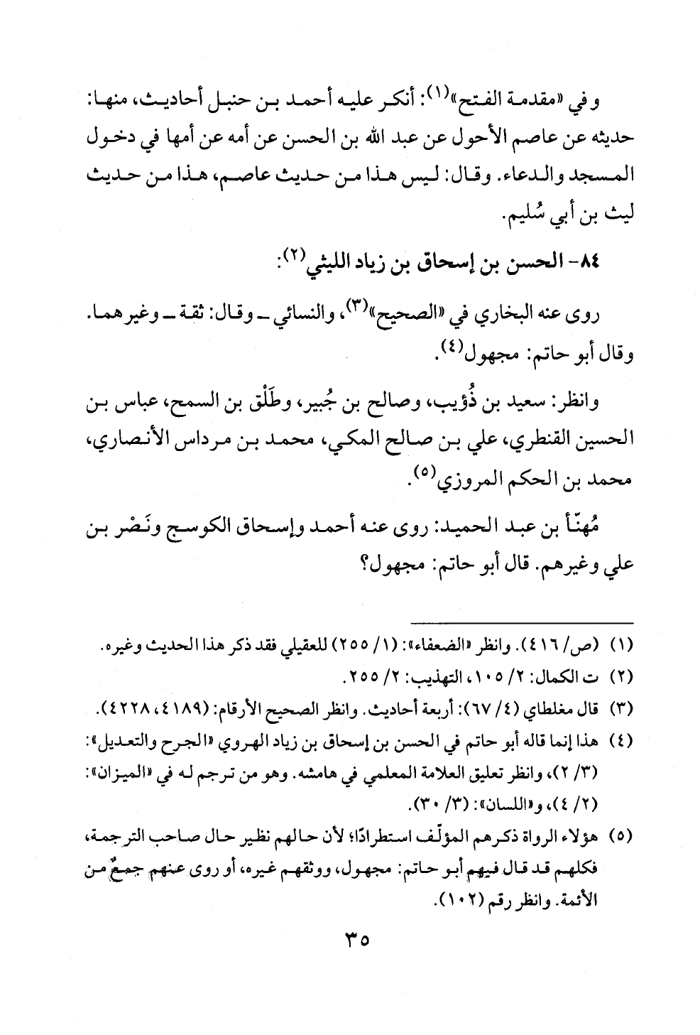 (¬٥) هؤلاء الرواة ذكرهم المؤلّف استطرادًا؛ لأن حالهم نظير حال صاحب الترجمة، فكلهم قد قال فيهم أبو حاتم: مجهول، ووثقهم غيره، أو روى عنهم جمعٌ من الأئمة. وانظر رقم (١٠٢).