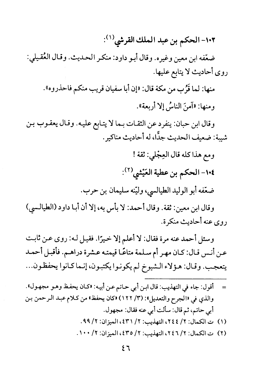 (¬٢) ت الكمال: ٢/ ٢٤٦، التهذيب: ٢/ ٤٣٥، الميزان: ٢/ ١٠٠.