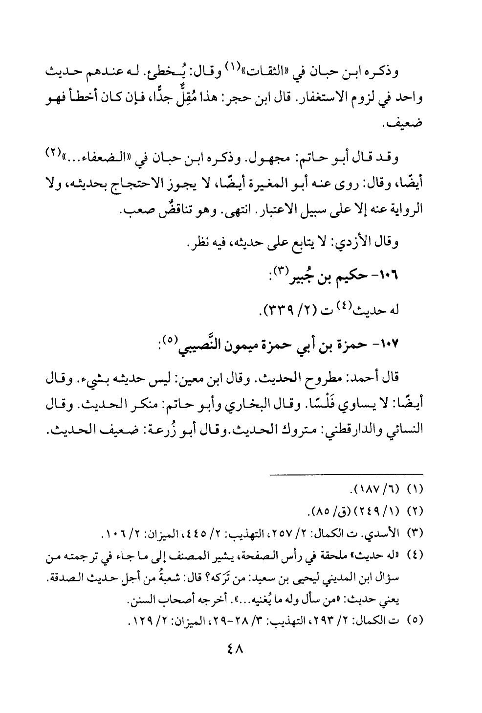 (¬٣) الأسدي. ت الكمال: ٢/ ٢٥٧، التهذيب: ٢/ ٤٤٥، الميزان: ٢/ ١٠٦.