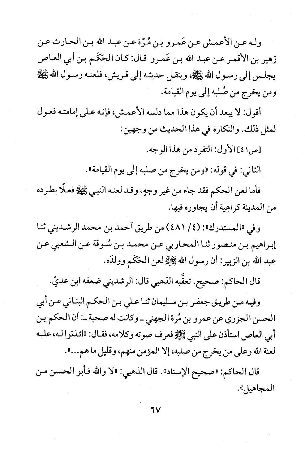 فأما لعن الحكم فقد جاء من غير وجهٍ، وقد لعنه النبي - صلى الله عليه وسلم - فعلًا بطرده من المدينة كراهية أن يجاوره فيها.