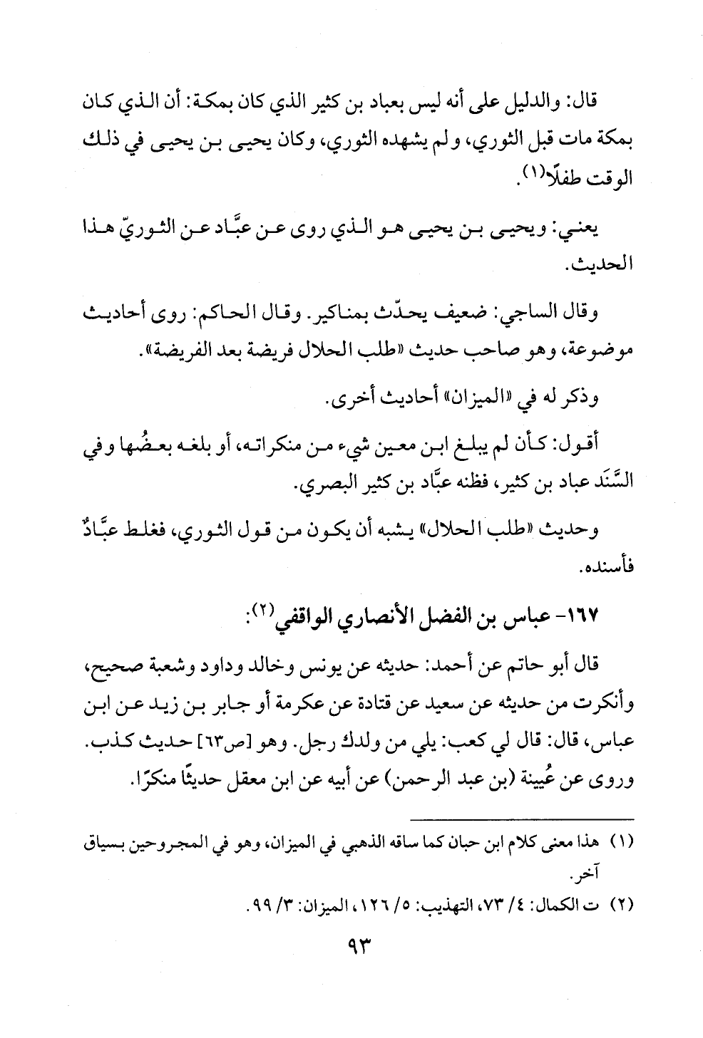 قال: والدليل على أنه ليس بعباد بن كثير الذي كان بمكة: أن الذي كان بمكة مات قبل الثوري، ولم يشهده الثوري، وكان يحيى بن يحيى في ذلك الوقت طفلًا (¬١).