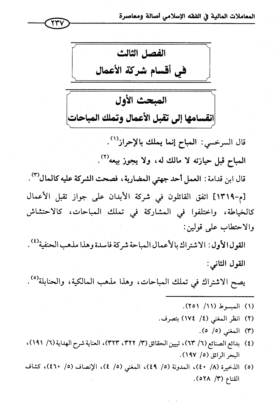 المبحث الأول انقسامها إلى تقبل الأعمال وتملك المباحات