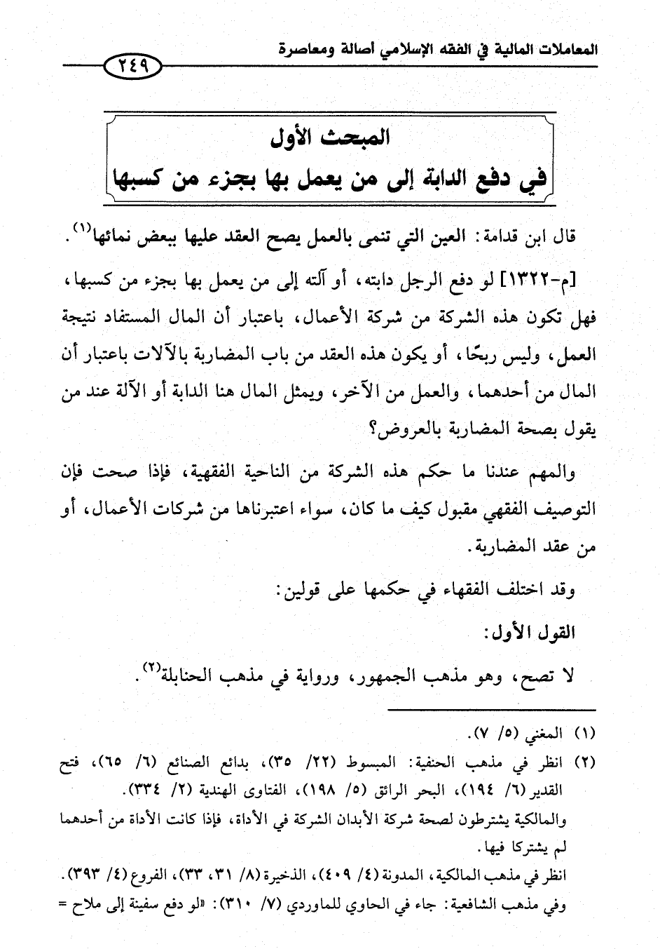 المبحث الأول في دفع الدابة إلى من يعمل بها بجزء من كسبها