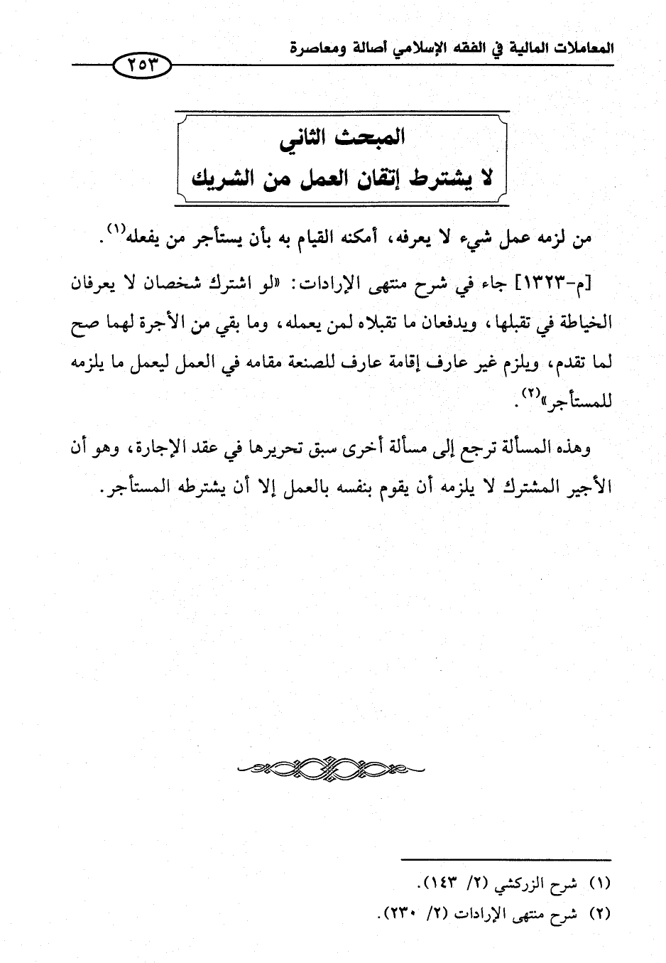 المبحث الثاني لا يشترط إتقان العمل من الشريك
