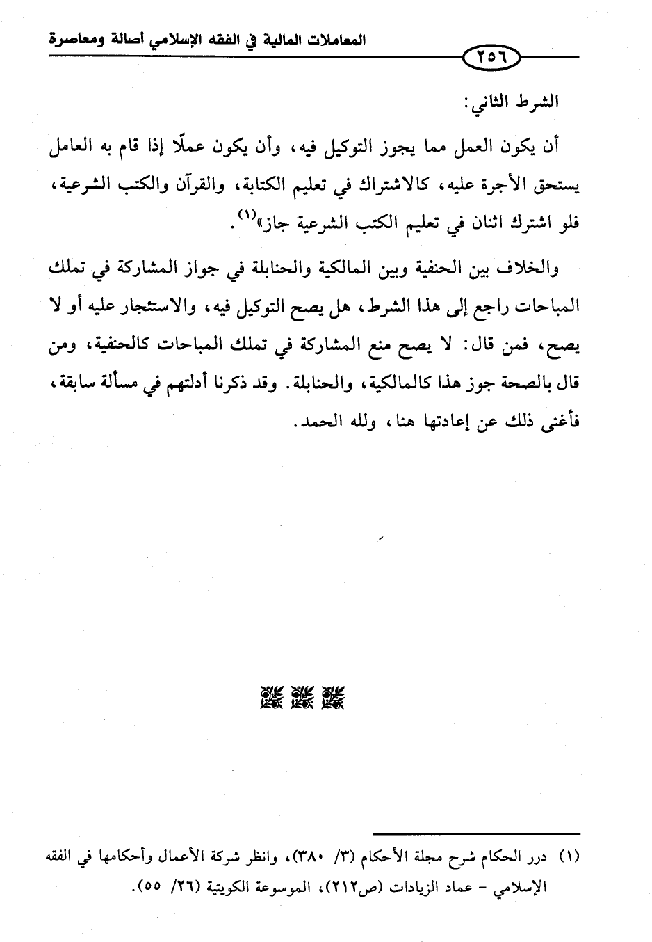 (¬١) درر الحكام شرح مجلة الأحكام (٣/ ٣٨٥)، وانظر شركة الأعمال وأحكامها في الفقه الإِسلامي - عماد الزيادات (ص ٢١٢)، الموسوعة الكويتية (٢٦/ ٥٥).