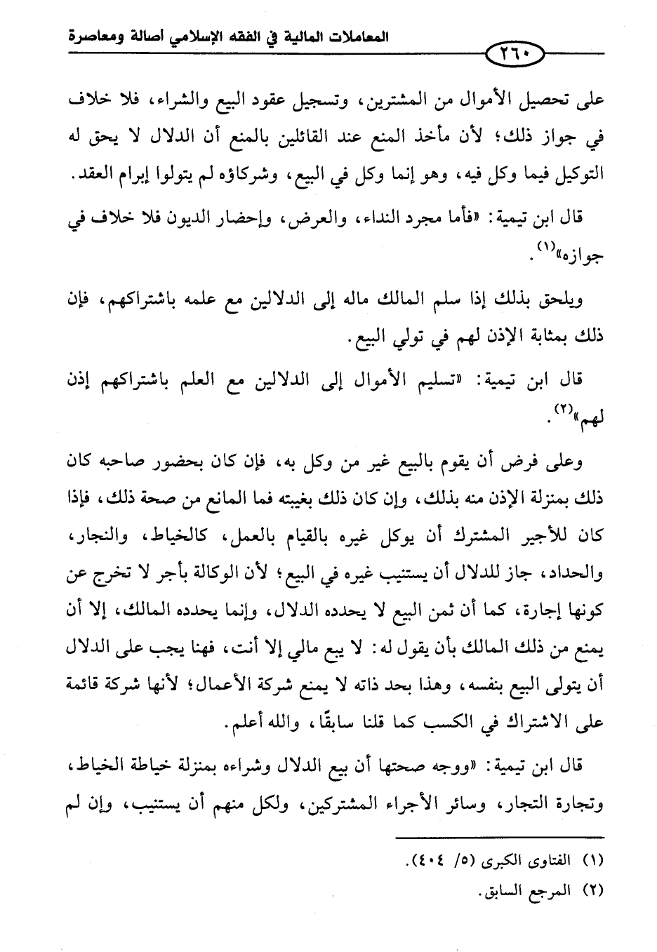 قال ابن تيمية: "تسليم الأموال إلى الدلالين مع العلم باشتراكهم إذن لهم" (¬٢).