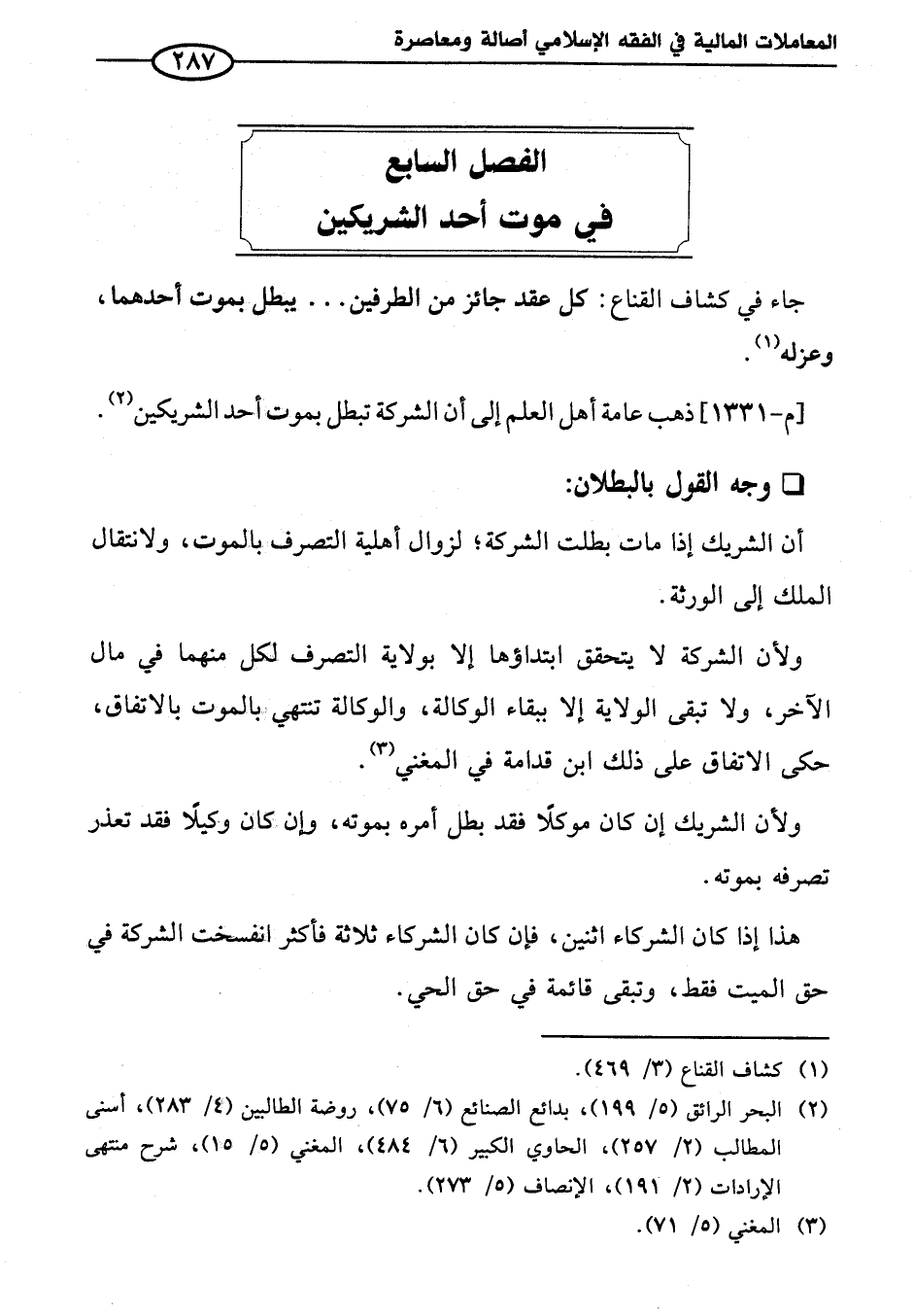 هذا إذا كان الشركاء اثنين، فإن كان الشركاء ثلاثة فأكثر انفسخت الشركة في حق الميت فقط، وتبقى قائمة في حق الحي.