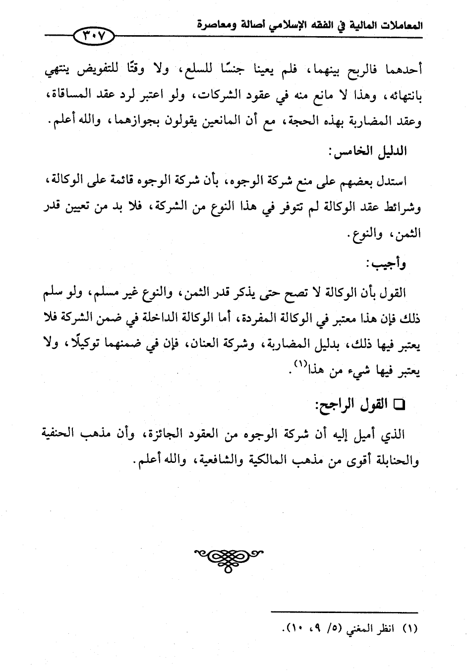 الذي أميل إليه أن شركة الوجوه من العقود الجائزة، وأن مذهب الحنفية والحنابلة أقوى من مذهب المالكية والشافعية، والله أعلم.
