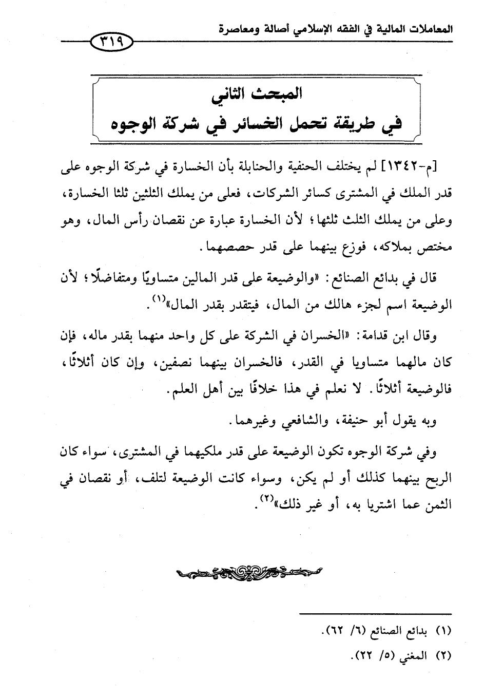 المبحث الثاني في طريقة تحمل الخسائر في شركة الوجوه