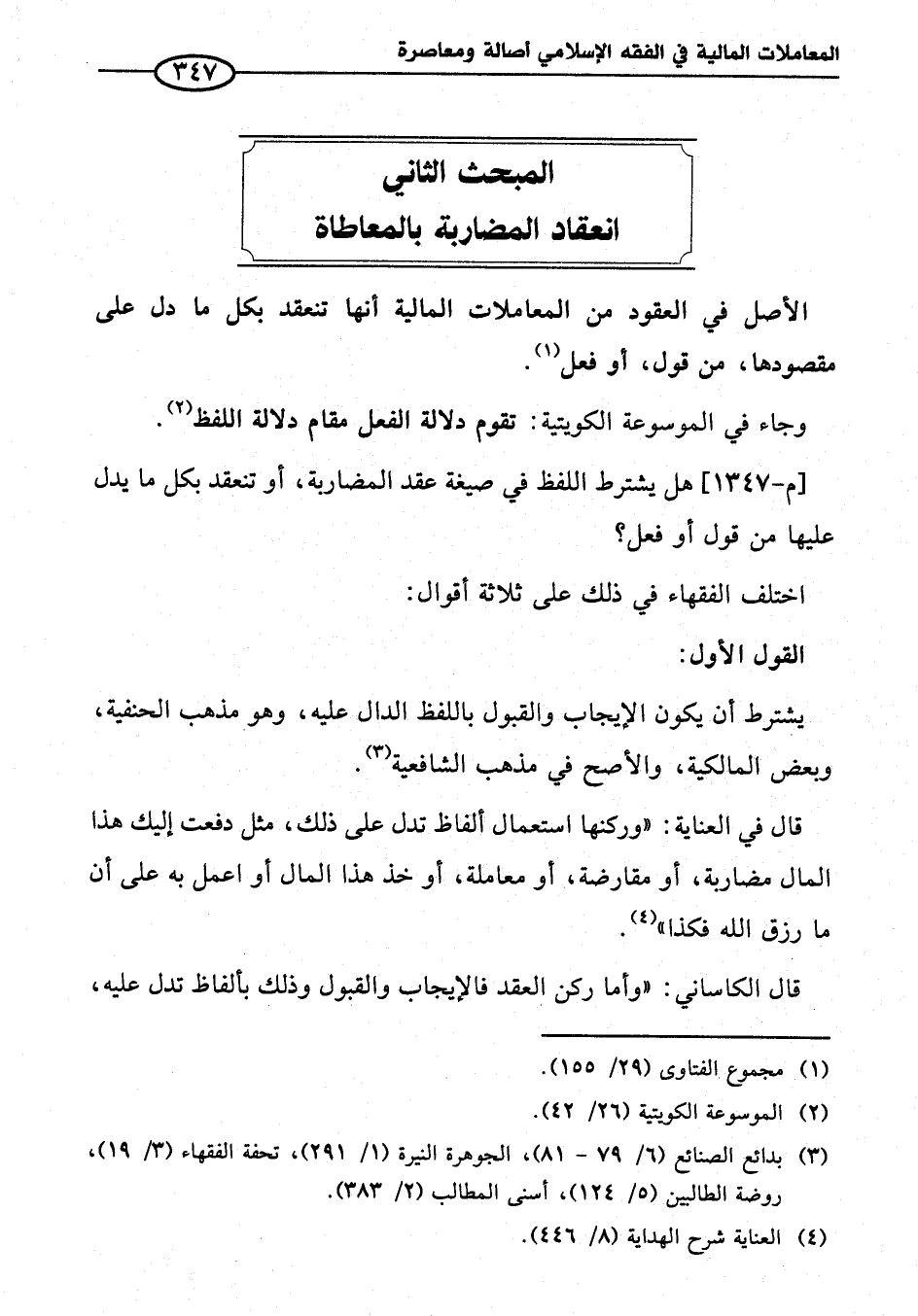 المبحث الثاني انعقاد المضاربة بالمعاطاة