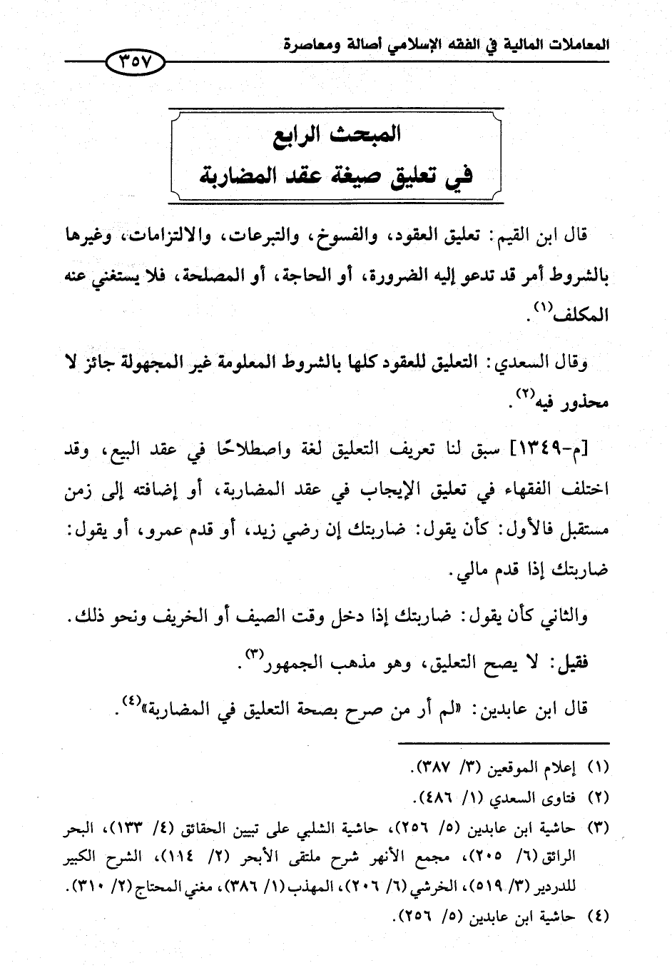 المبحث الرابع في تعليق صيغة عقد المضاربة