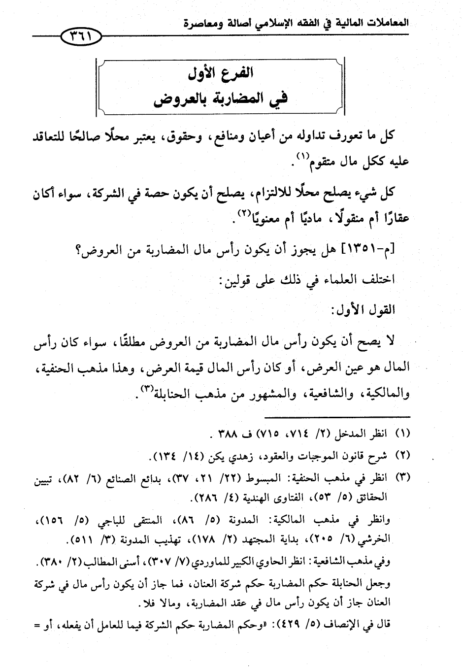 الفرع الأول في المضاربة بالعروض