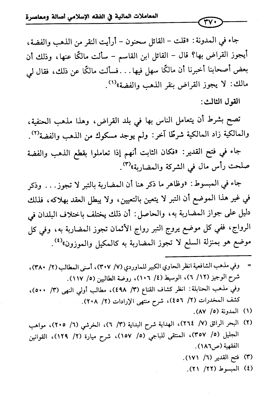 جاء في فتح القدير: "فكان الثابت أنهم إذا تعاملوا بقطع الذهب والفضة صلحت رأس مال في الشركة والمضاربة" (¬٣).