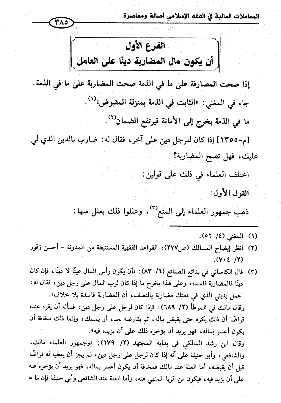 الفرع الأول أن يكون مال المضاربة دينا على العامل