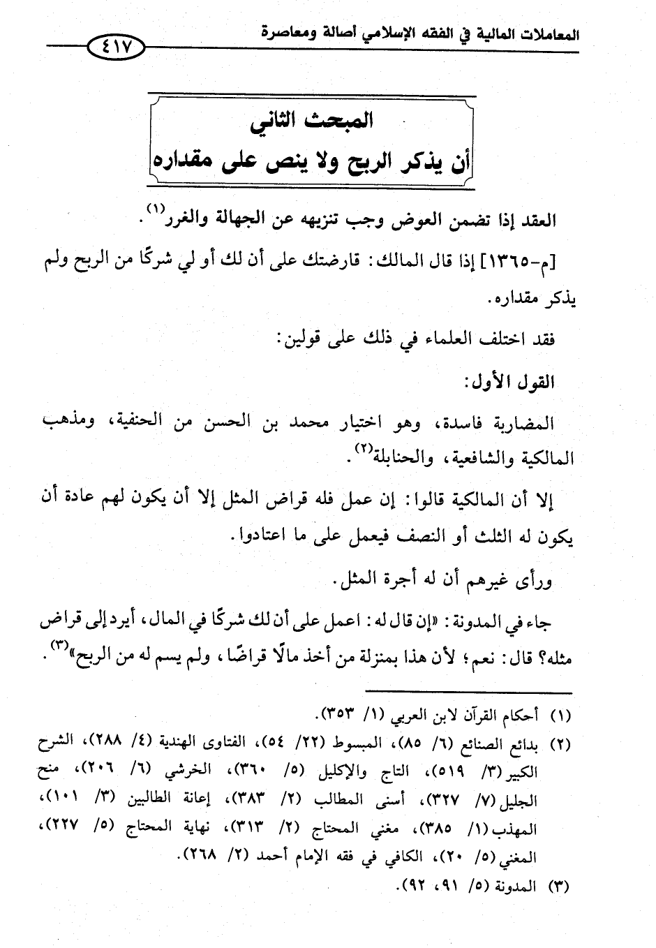 المبحث الثاني أن يذكر الربح ولا ينص على مقداره
