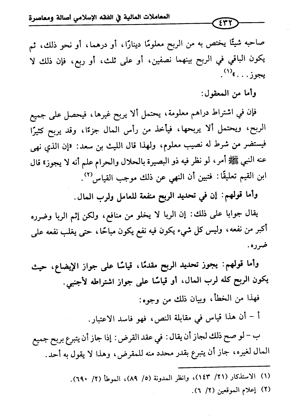 ب - لو صح ذلك لجاز أن يقال: في عقد القرض: إذا جاز أن يتبرع بربح جميع المال لغيره، جاز أن يتبرع بقدر محدد منه للمقرض، وهذا لا يقول به أحد.