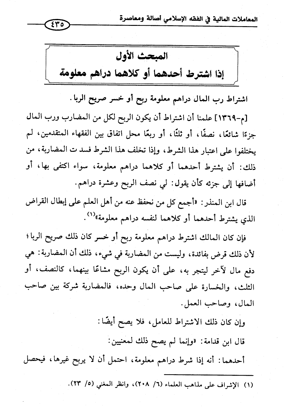 اشتراط رب المال دراهم معلومة ربح أو خسر صريح الربا.