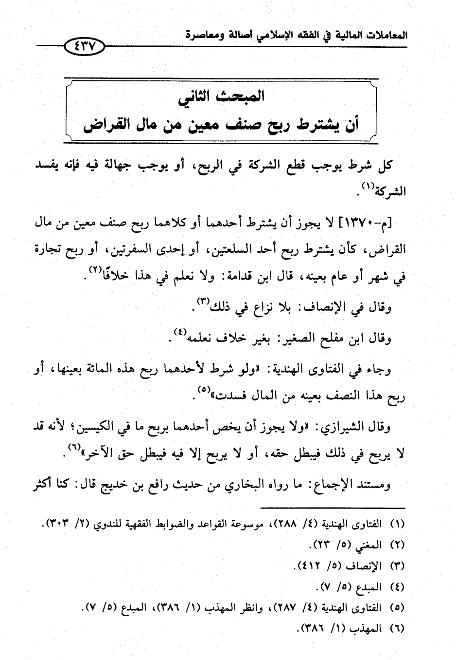 المبحث الثاني أن يشترط ربح صنف معين من مال القراض