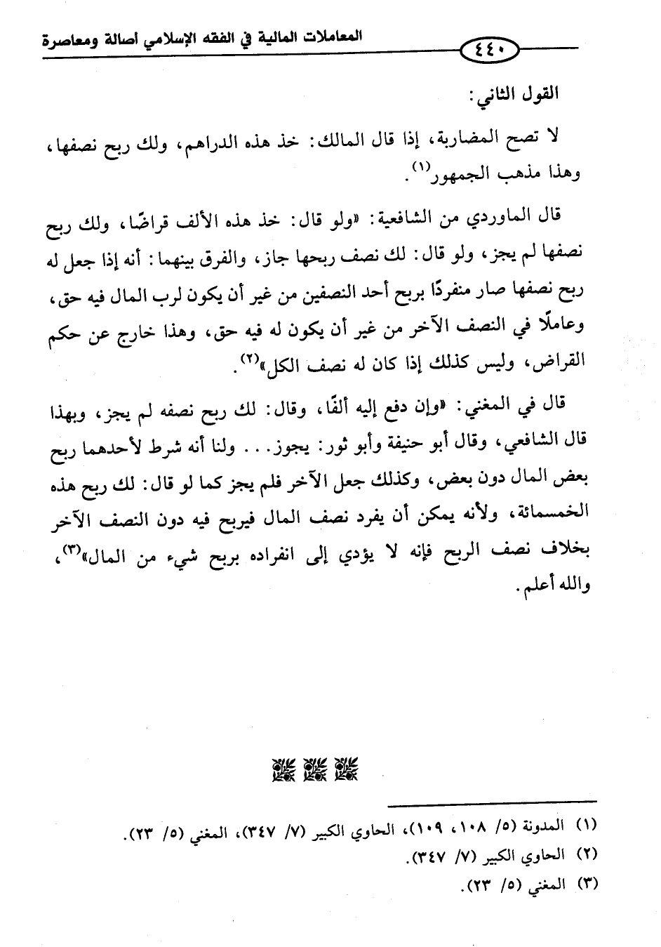 (¬١) المدونة (٥/ ١٠٨، ١٠٩)، الحاوي الكبير (٧/ ٣٤٧)، المغني (٥/ ٢٣).