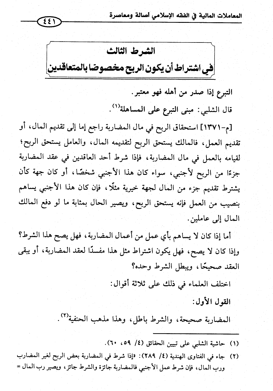 (¬٢) جاء في الفتاوى الهندية (٤/ ٢٨٩): "إذا شرط في المضاربة بعض الربح لغير المضارب ورب المال، فإن شرط عمل الأجنبي فالمضاربة جائزة والشرط جائز، ويصير رب المال =
