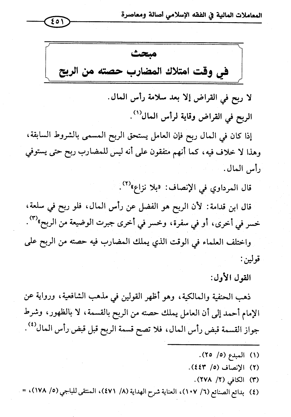 مبحث في وقت امتلاك المضارب حصته من الربح