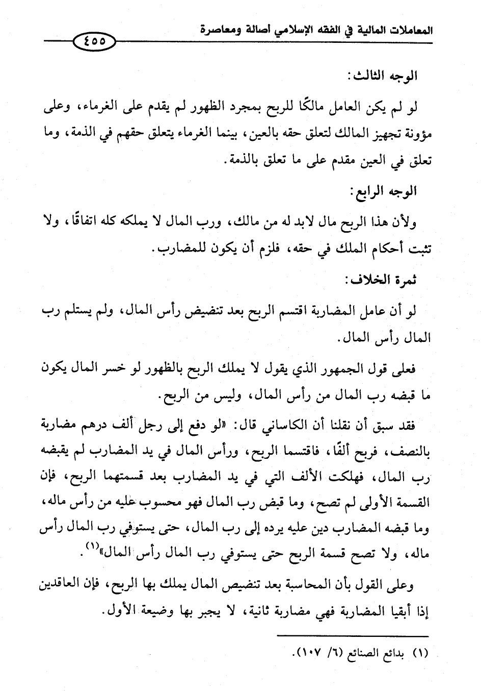 فعلى قول الجمهور الذي يقول لا يملك الربح بالظهور لو خسر المال يكون ما قبضه رب المال من رأس المال، وليس من الربح.