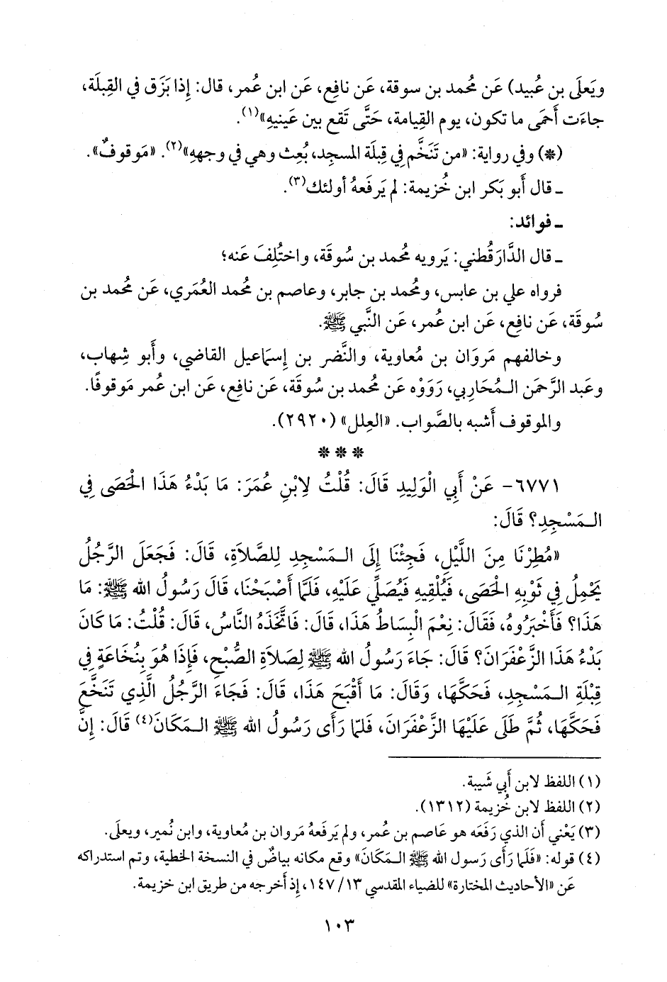 وخالفهم مروان بن معاوية، والنضر بن إسماعيل القاضي، وأَبو شهاب، وعبد الرَّحمَن المحاربي، رووه عن محمد بن سوقة، عن نافع، عن ابن عمر موقوفا.