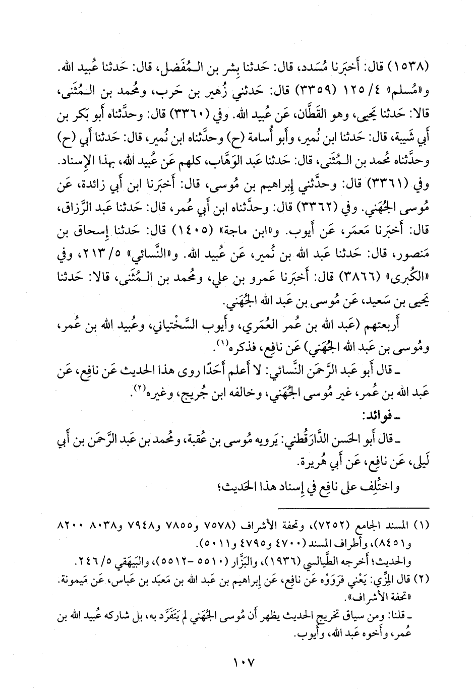 - وقال الدارقُطني: أخرج مسلم حديث عُبيد الله، وموسى الجهني، عن نافع، عن ابن عمر؛ صلاة في مسجدي.