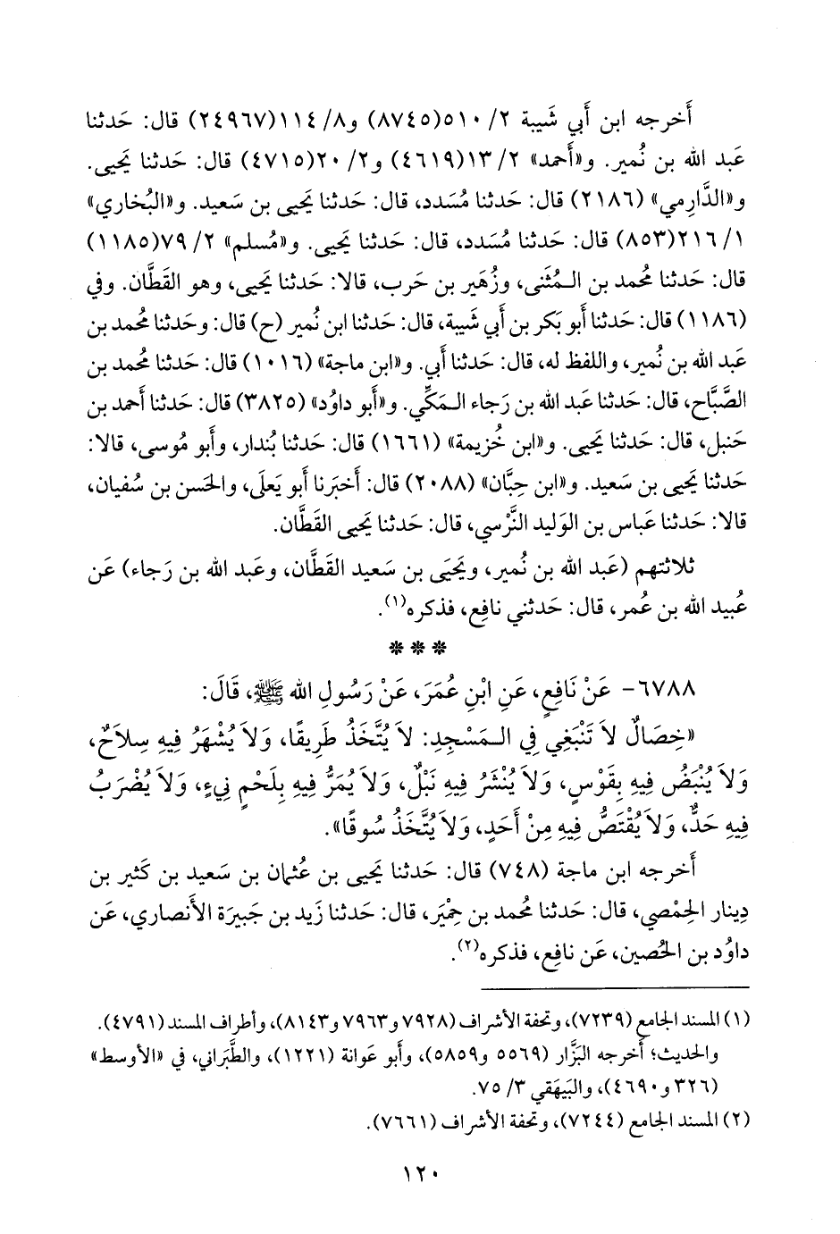 ثلاثتهم (عبد الله بن نُمير، ويحيى بن سعيد القطان، وعبد الله بن رجاء) عن عُبيد الله بن عمر، قال: حدثني نافع، فذكره (¬١).