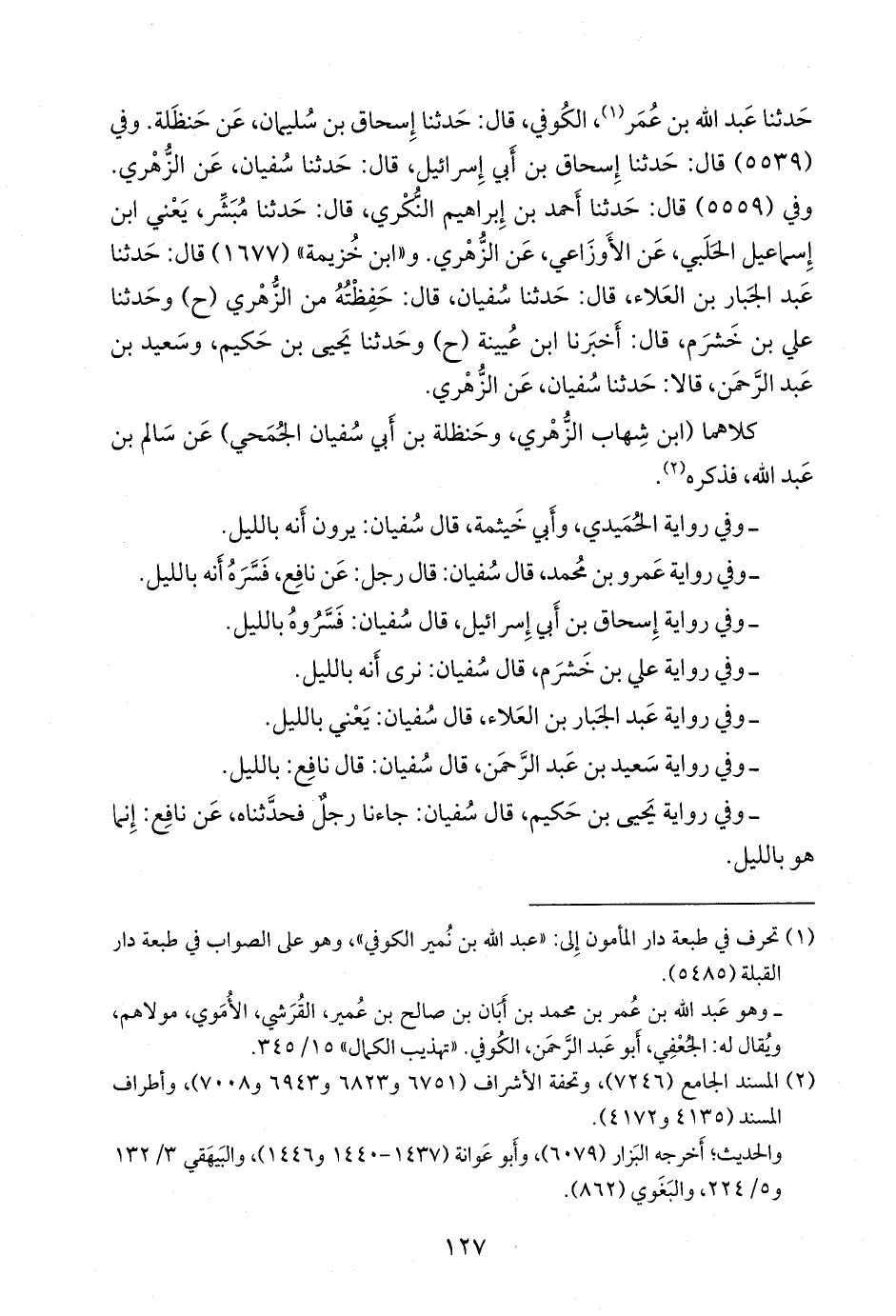 - وفي رواية سعيد بن عبد الرَّحمَن، قال سفيان: قال نافع: بالليل.