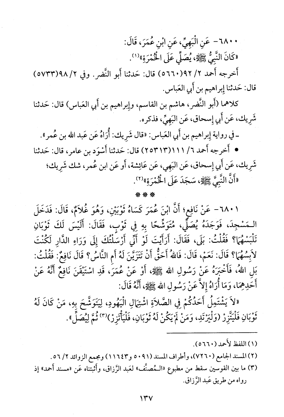 (¬٢) المسند الجامع (٧٢٦٠)، وأطراف المسند (٥٠٩١ و ١١٦٤٣) ومَجمَع الزوائد ٢/ ٥٦.