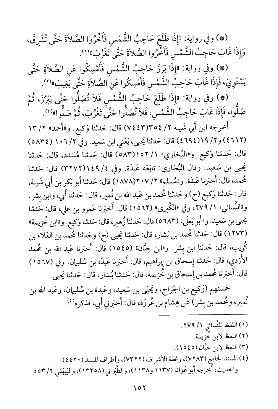 «إذا بدا حاجب الشمس، فأخروا الصلاة حتى تبرز، وإذا غاب حاجب الشمس، فأخروا الصلاة حتى تغيب»، «مُرسَل».