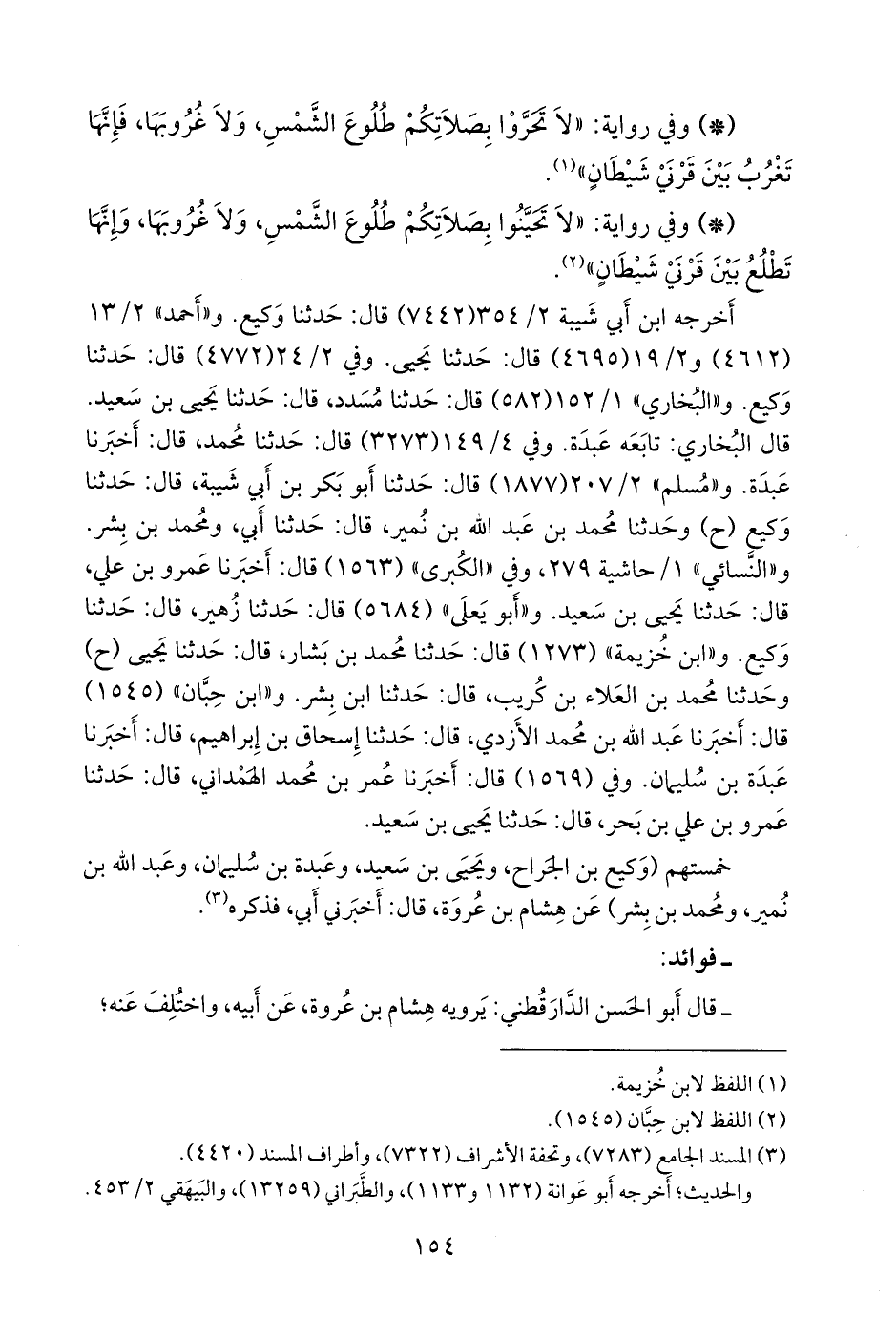 فرواه زائدة بن قُدَامة، ويحيى القطان، ووكيع، ومحمد بن بشر، وعَبدة بن سليمان، ويحيى بن أبي زائدة، وعلي بن هاشم بن البريد، وعلي بن مُسهِر، عن هشام، عن أبيه، عن ابن عمر.