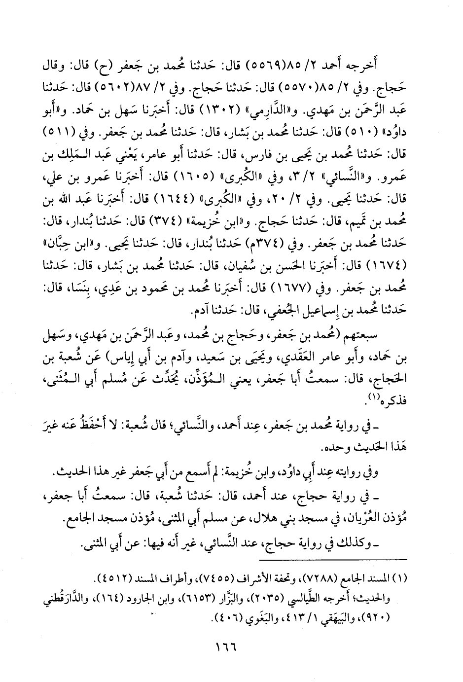 - وفي رواية حجاج، قال: حدثنا شعبة، قال: سمعتُ أَبا جعفر، مُؤذن العُرْيان في مسجد بني هلال، عن مسلم أَبي المثنى، مُؤذن مسجد الجامع.
