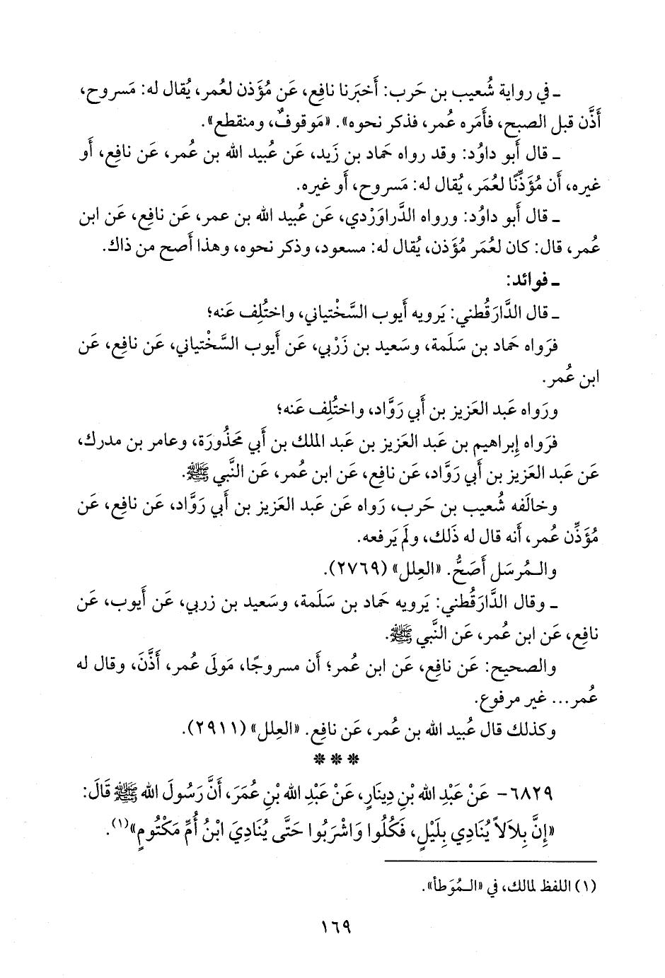وخالفه شعيب بن حرب، رواه عن عبد العزيز بن أبي رَوَّاد، عن نافع، عن مؤذن عمر، أنه قال له ذلك، ولم يرفعه.