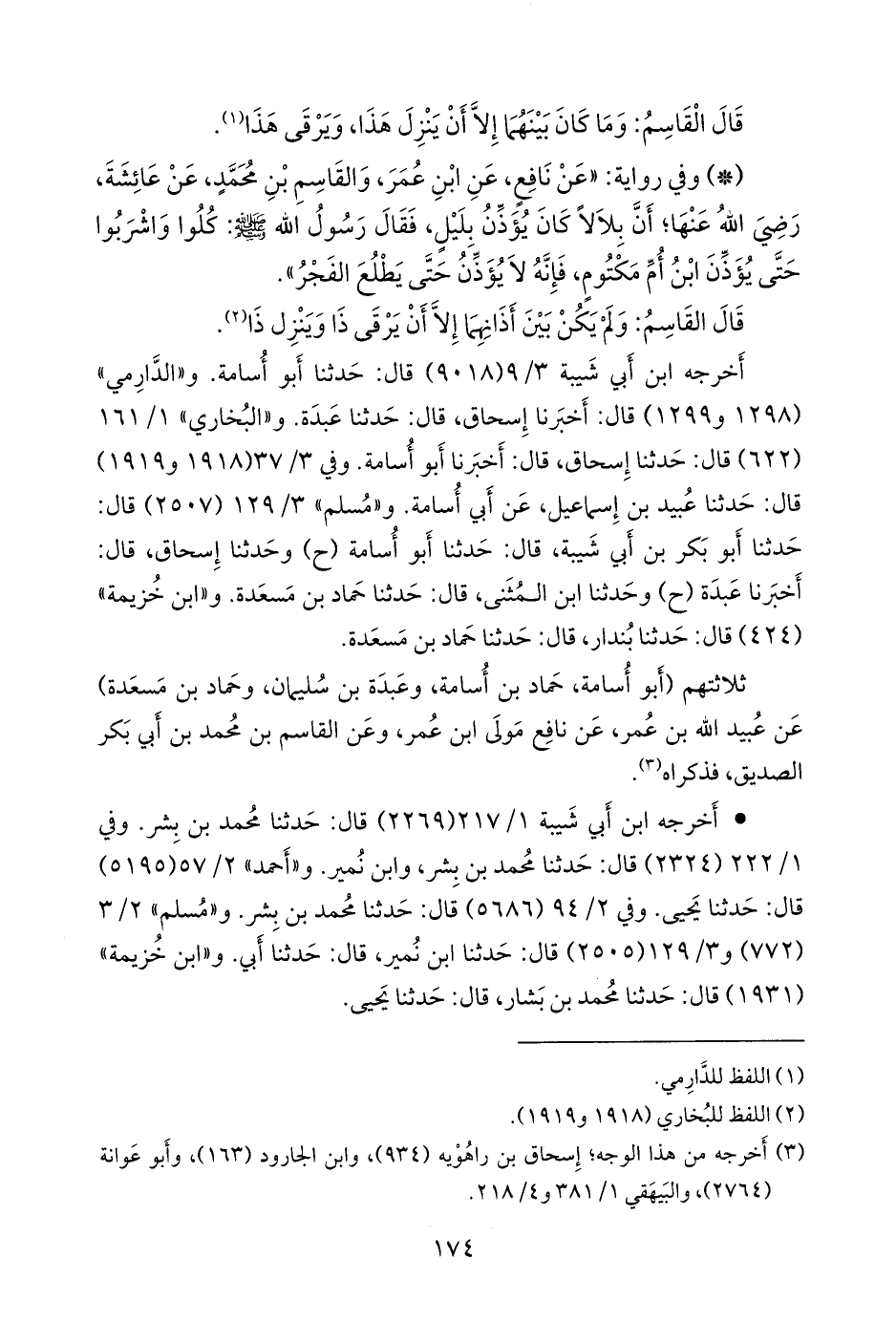 ثلاثتهم (أَبو أُسامة حماد بن أُسامة، وعَبدة بن سليمان، وحماد بن مَسعَدة) عن عُبيد الله بن عمر، عن نافع مولى ابن عمر، وعن القاسم بن محمد بن أَبي بكر الصِّدِّيق، فذكراه (¬١).