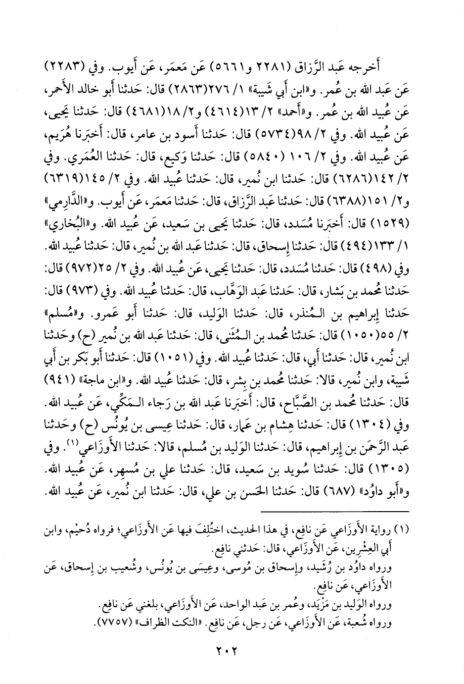 (¬١) رواية الأوزاعي عن نافع، في هذا الحديث، اختلف فيها عن الأوزاعي؛ فرواه دُحَيم، وابن أبي العشرين، عن الأوزاعي، قال: حدثني نافع.