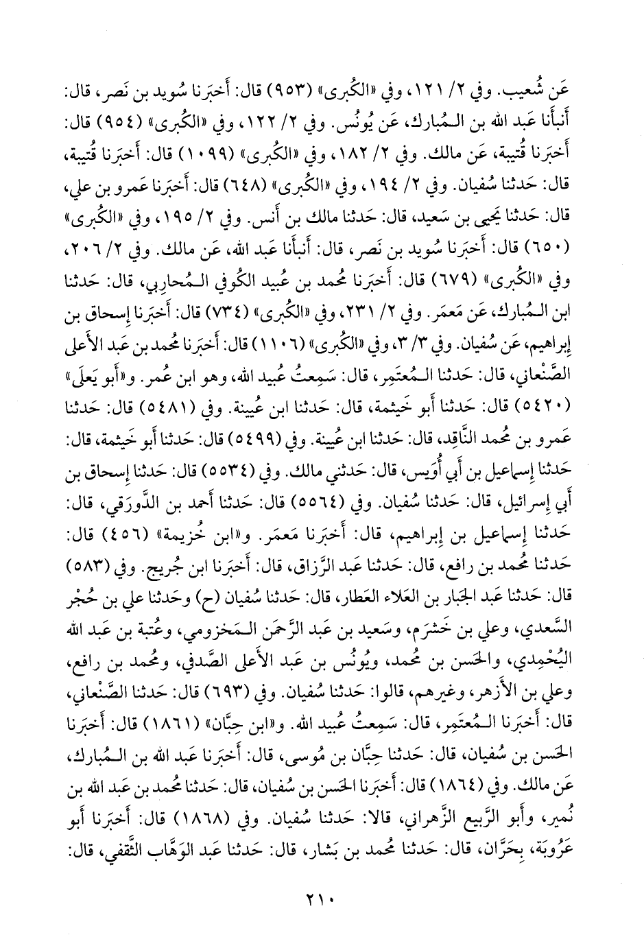و «ابن خزيمة» (٤٥٦) قال: حدثنا محمد بن رافع، قال: حدثنا عبد الرزاق، قال: أَخبرنا ابن جُريج. وفي (٥٨٣) قال: حدثنا عبد الجبار بن العلاء العطار، قال: حدثنا سفيان (ح) وحدثنا علي بن حُجْر السعدي، وعلي بن خَشرم، وسعيد بن عبد الرَّحمَن المخزومي، وعُتبة بن عبد الله اليحْمِدي، والحسن بن محمد، ويونس بن عبد الأَعلى الصَّدفي، ومحمد بن رافع، وعلي بن الأَزهر، وغيرهم، قالوا: حدثنا سفيان. و «ابن حِبَّان» (١٨٦١) قال: أَخبرنا الحسن بن سفيان، قال: حدثنا حِبَّان بن موسى، قال: أَخبرنا عبد الله بن المبارك، عن مالك. وفي (١٨٦٤) قال: أَخبرنا الحسن بن سفيان، قال: حدثنا محمد بن عبد الله بن نُمير، وأَبو الربيع الزَّهراني، قالا: حدثنا سفيان.