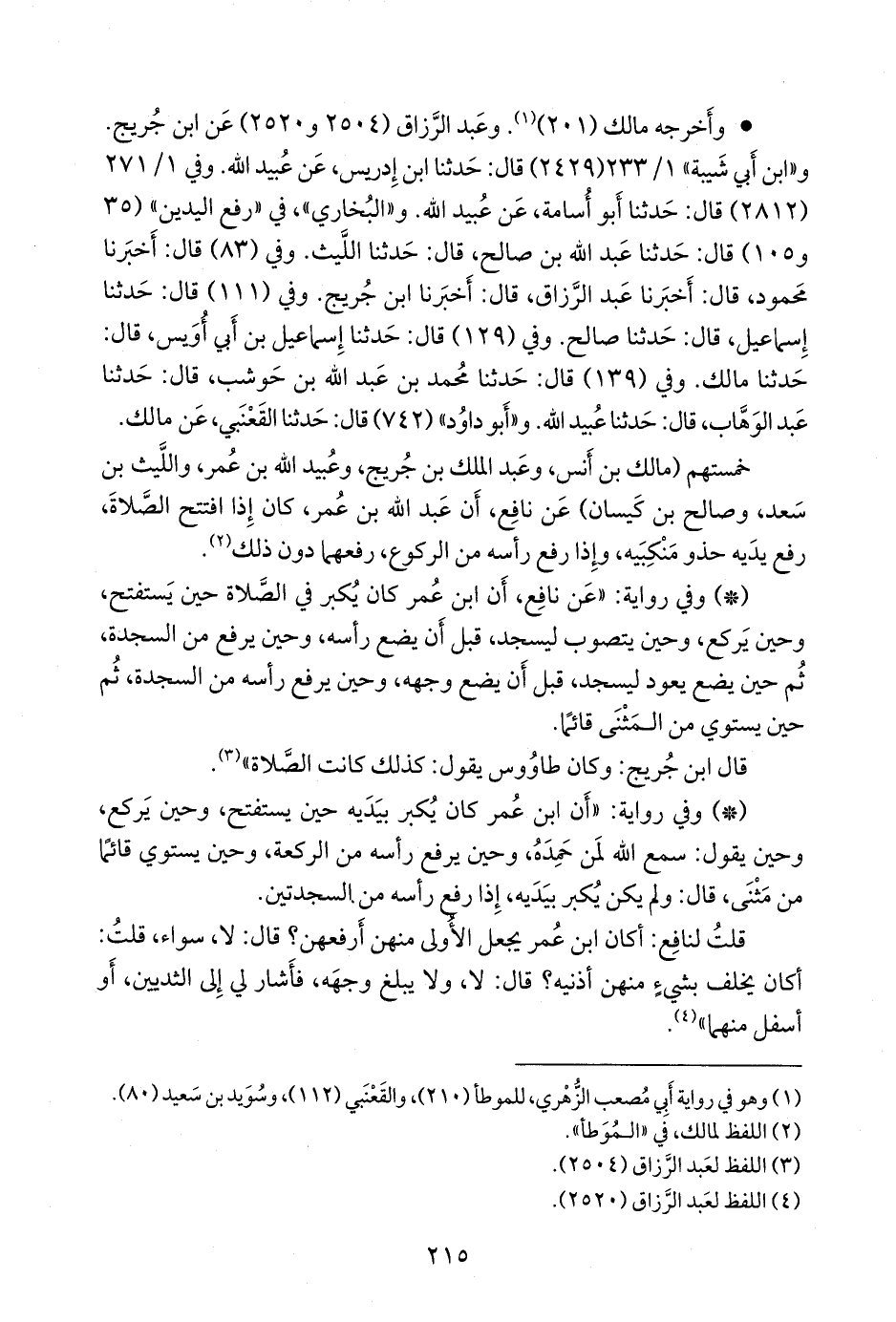 - وفي رواية: «أن عبد الله بن عمر، كان إذا استقبل الصلاة، رفع يديه، وإذا ركع، وإذا رفع رأسه من الركوع، وإذا قام من السجدتين كبر، ورفع يديه» (¬٤).