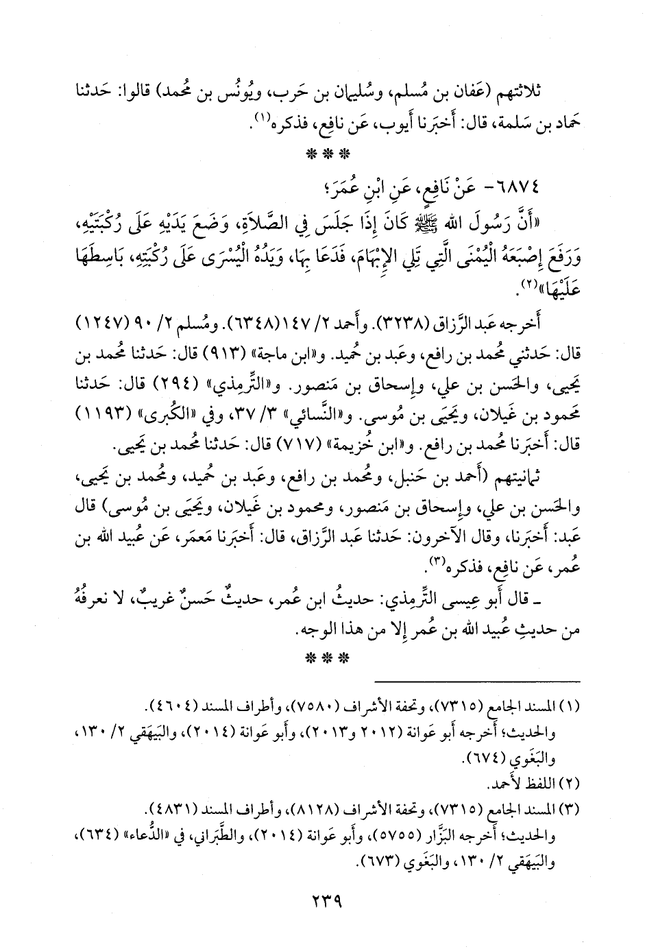 (¬٢) المسند الجامع (٧٣١٥)، وتحفة الأشراف (٨١٢٨)، وأطراف المسند (٤٨٣١).
