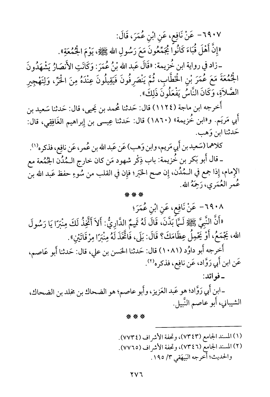 (¬١) المسند الجامع (٧٣٤٦)، وتحفة الأشراف (٧٧٦٥).