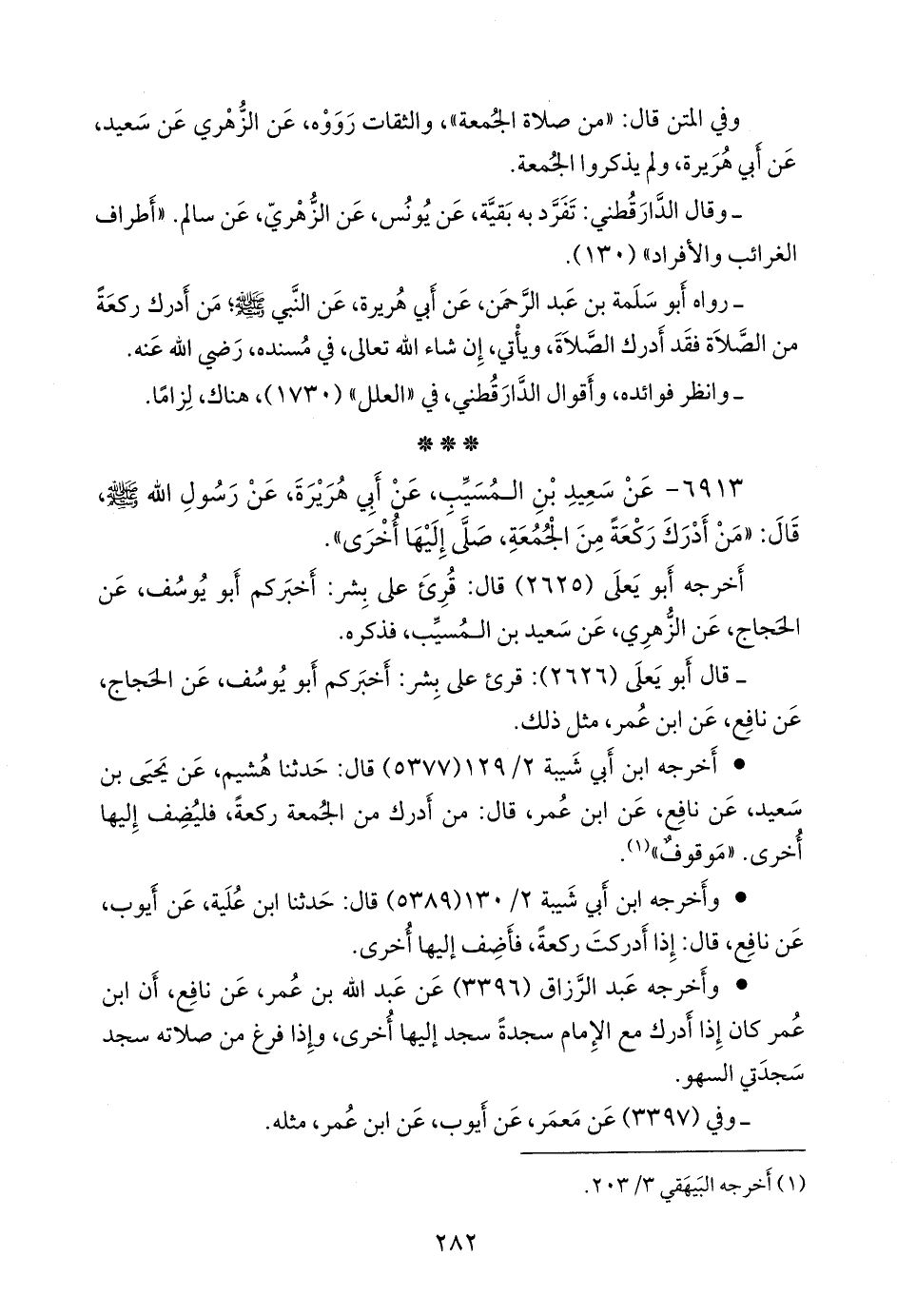 - أَخرجه ابن أبي شيبة (٥٣٧٧) قال: حدثنا هُشيم، عن يحيى بن سعيد، عن نافع، عن ابن عمر، قال: من أدرك من الجمعة ركعة، فليضف إليها أخرى. «موقوف» (¬١).