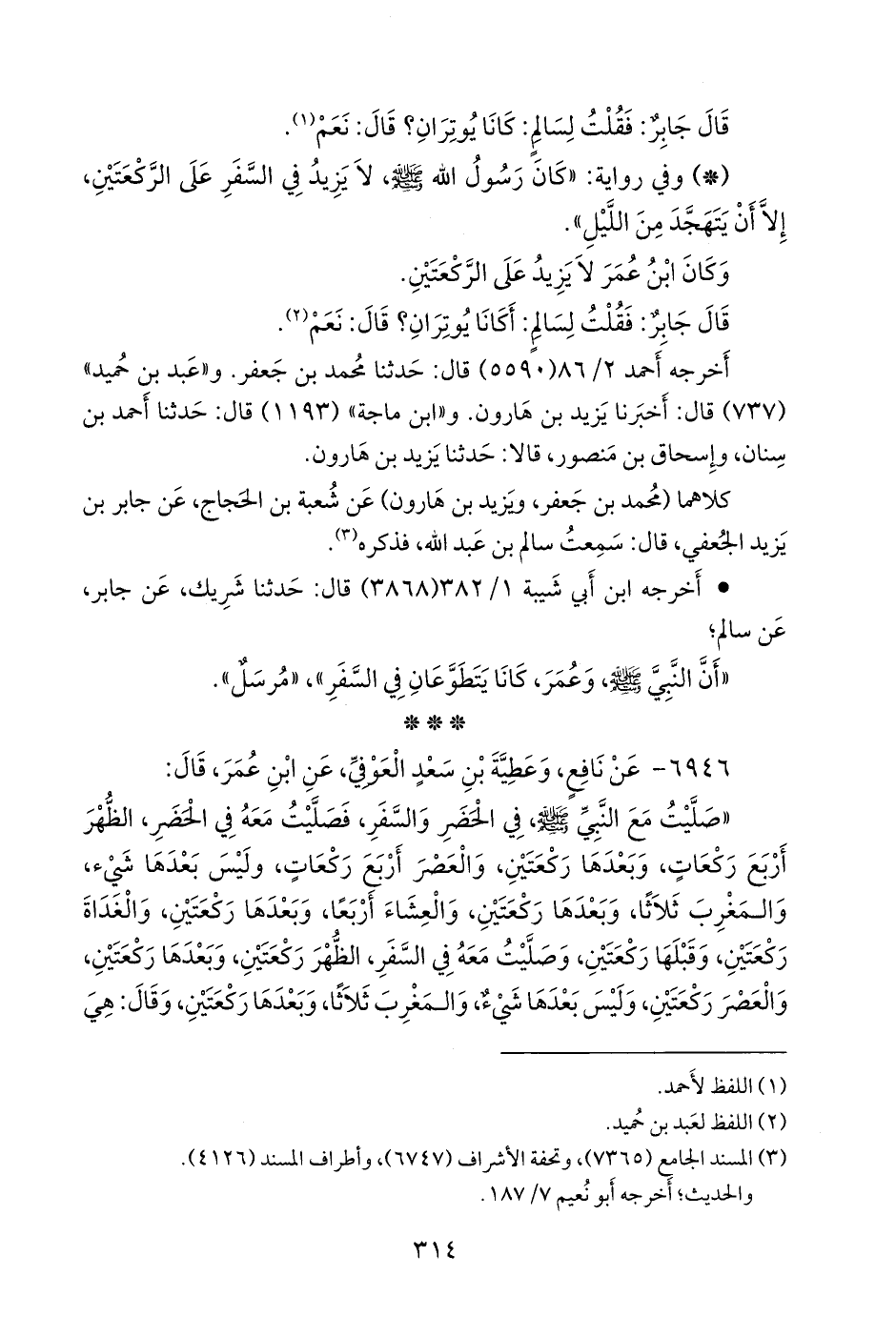٦٩٤٦ - عن نافع، وعطية بن سعد العوفي، عن ابن عمر، قال: