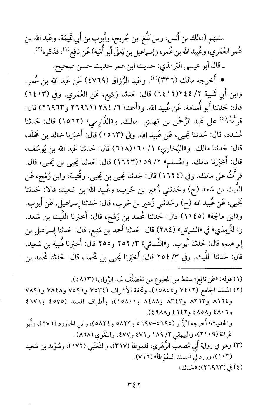 (¬١) المسند الجامع (٧٤٠٢ و ١٥٨٥٥)، وتحفة الأشراف (٧٥٣٤ و ٧٥٩١ و ٧٨٤٨ و ٧٨٩١ و ٨١٦٤ و ٨٢٦٣ و ٨٣٤٣ و ٨٤٨٨ و ١٥٨٠١)، وأطراف المسند (٤٥٧٥ و ٤٦٧٦ و ٤٨٠٦ و ٤٨٥٨ و ٤٩٤٢ و ٤٩٨٨).
