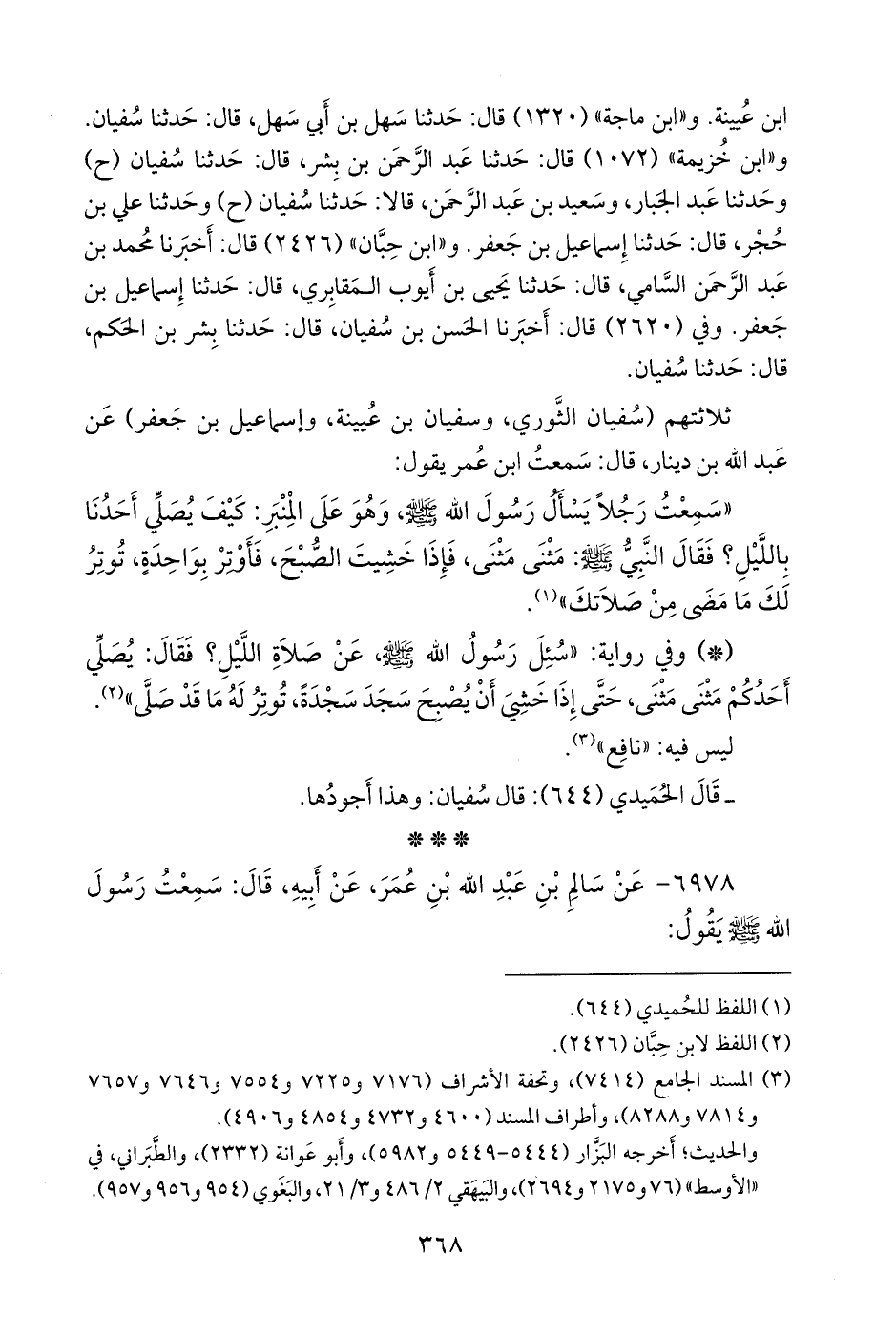 و «ابن ماجة» (١٣٢٠) قال: حدثنا سهل بن أبي سهل، قال: حدثنا سفيان. و «ابن خزيمة» (١٠٧٢) قال: حدثنا عبد الرَّحمَن بن بشر, قال: حدثنا سفيان (ح) وحدثنا عبد الجبار، وسعيد بن عبد الرَّحمَن، قالا: حدثنا سفيان (ح) وحدثنا علي بن حُجْر، قال: حدثنا إسماعيل بن جعفر. و «ابن حِبَّان» (٢٤٢٦) قال: أخبرنا محمد بن عبد الرَّحمَن السامي، قال: حدثنا يحيى بن أيوب المقابري، قال: حدثنا إسماعيل بن جعفر. وفي (٢٦٢٠) قال: أخبرنا الحسن بن سفيان، قال: حدثنا بشر بن الحكم، قال: حدثنا سفيان.
