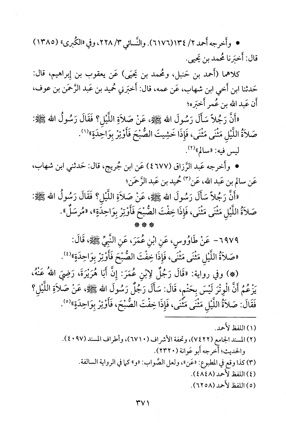 «أن رجلا سأل رسول الله صَلى الله عَليه وسَلم عن صلاة الليل؟ فقال رسول الله صَلى الله عَليه وسَلم: صلاة الليل مثنى مثنى، فإذا خفت الصبح فأوتر بواحدة»، «مُرسَل».