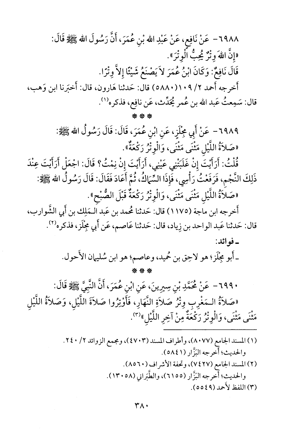 (¬١) المسند الجامع (٨٠٧٧)، وأطراف المسند (٤٧٠٣)، ومَجمَع الزوائد ٢/ ٢٤٠.