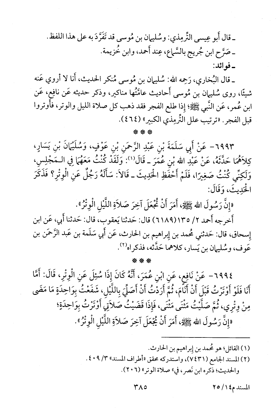 ٦٩٩٣ - عن أبي سلمة بن عبد الرَّحمَن بن عوف، وسليمان بن يسار، عن عبد الله بن عمر، قال (¬١): ولقد كنت معهما في المجلس، ولكني كنت صغيرا، فلم أحفظ الحديث، قالا: سأله رجل عن الوتر؟ فذكر الحديث، وقال: