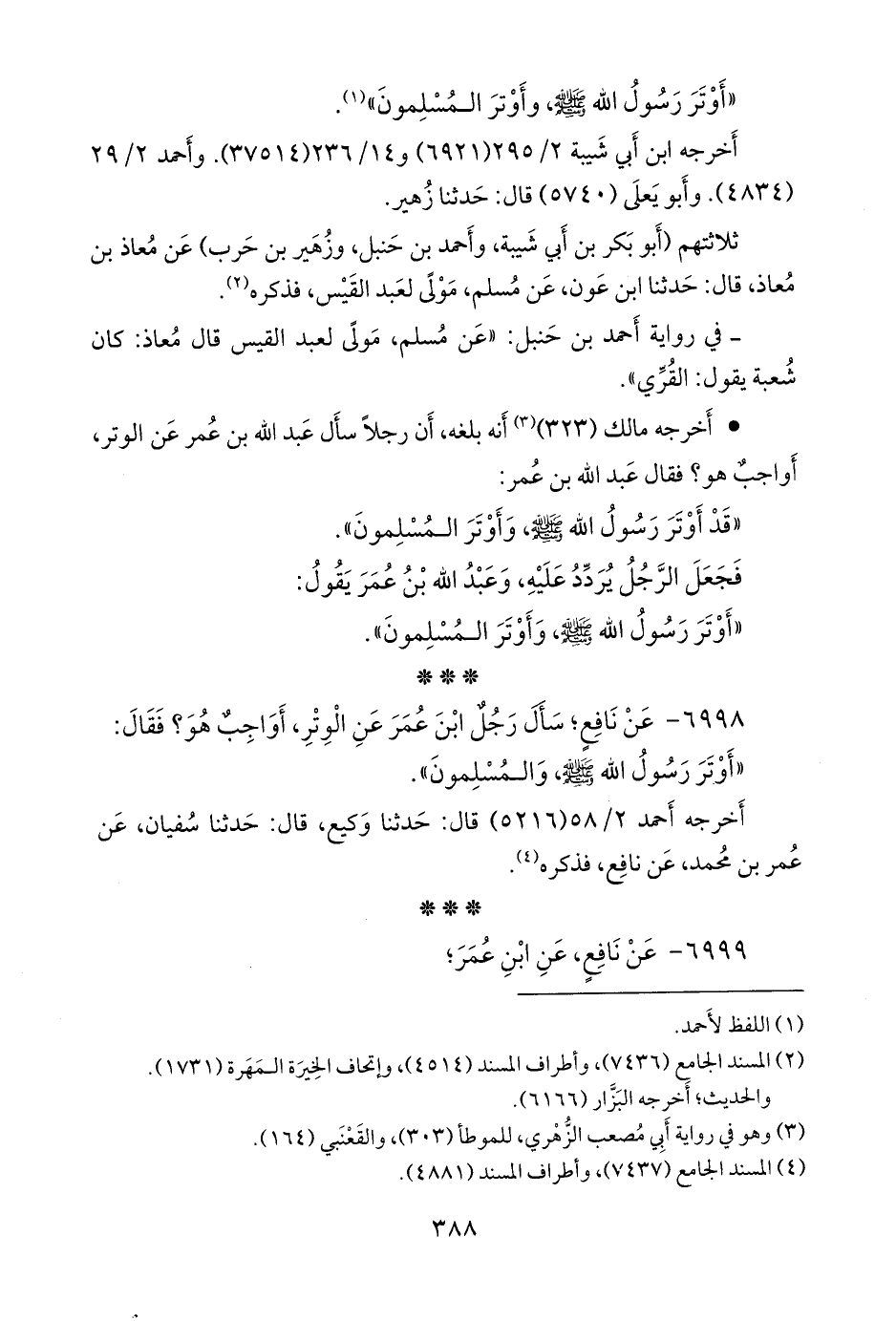 «أوتر رسول الله صَلى الله عَليه وسَلم والمسلمون».