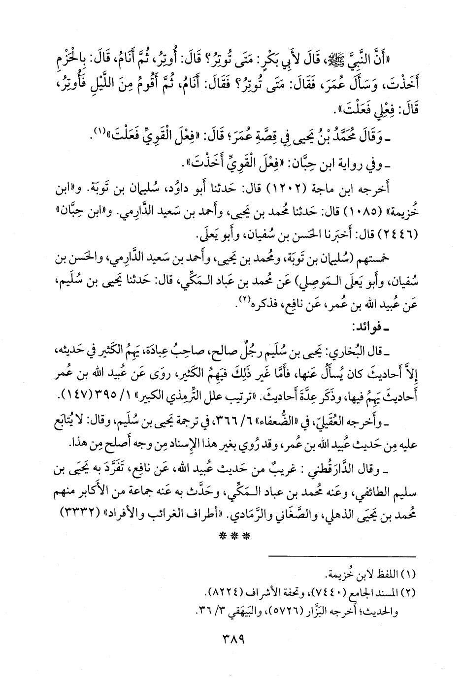 - وقال الدارقُطني: غريبٌ من حديث عُبيد الله، عن نافع، تفرد به يحيى بن سليم الطائفي، وعنه محمد بن عباد المكي، وحدث به عنه جماعة من الأكابر منهم محمد بن يحيى الذُّهْلي، والصغاني والرمادي. «أطراف الغرائب والأفراد» (٣٣٣٢).